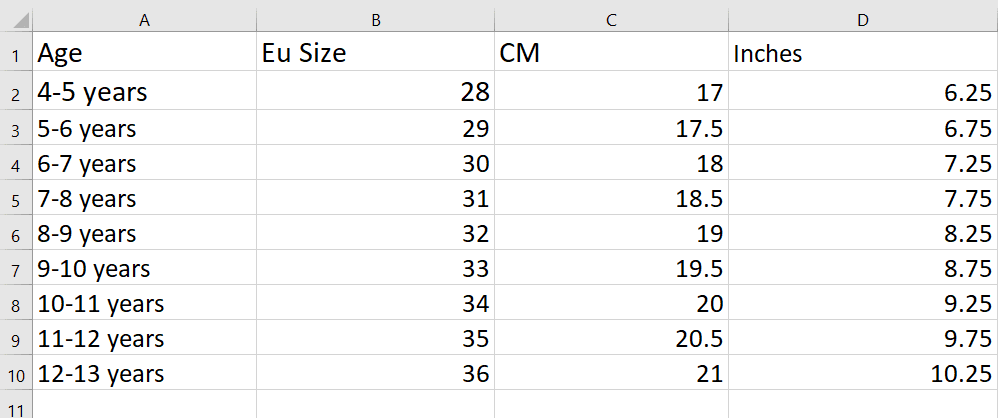 ize Chart-